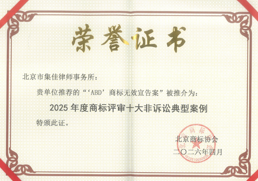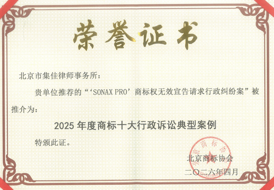 集佳代理案件入选北京商标协会2025年度北京商标典型案例