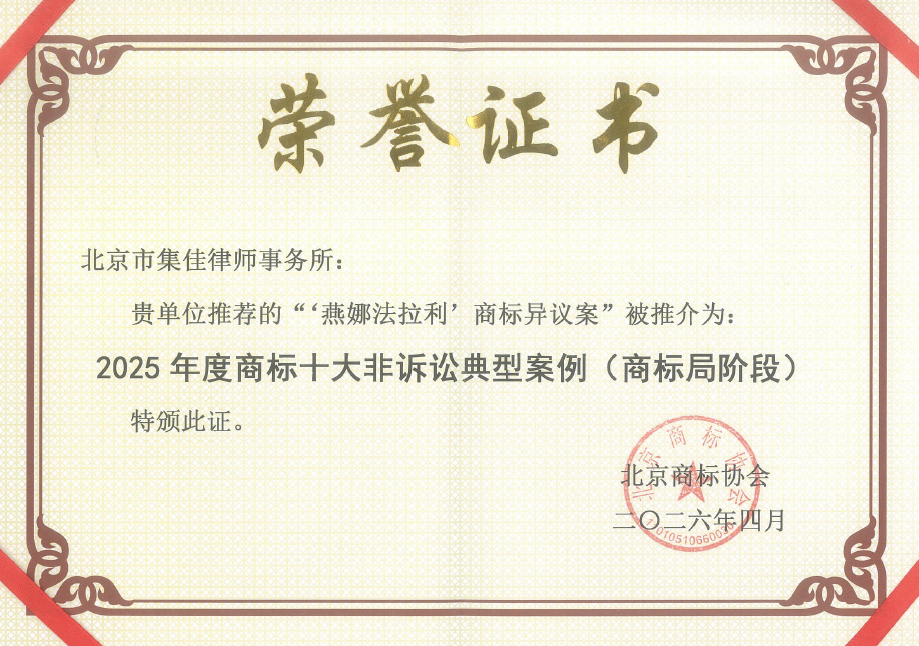 集佳代理的5个案件入选2025年度典型案例,充分彰显了集佳在商标法律服务领域的卓越实力和专业水平:
