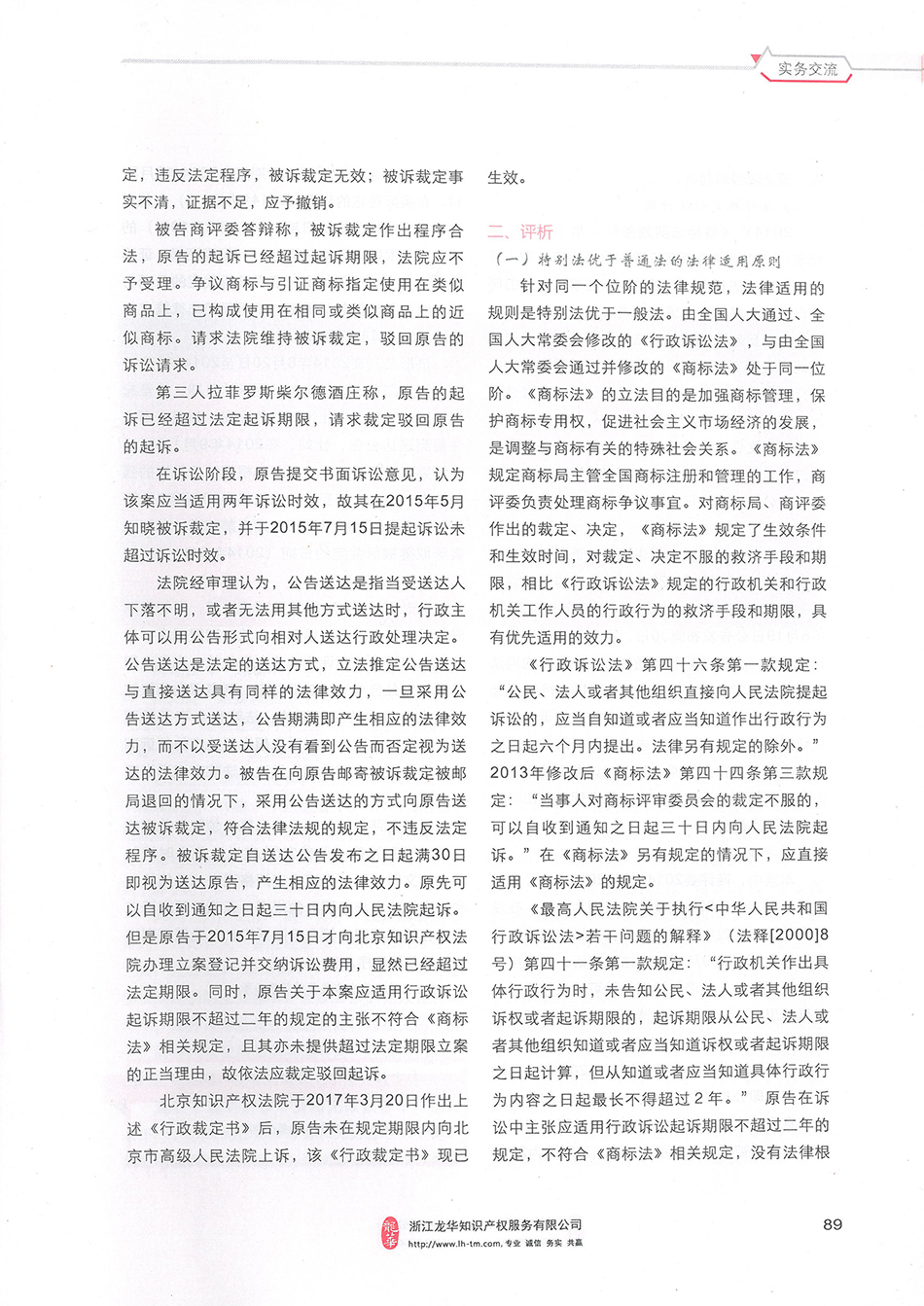 集佳文章《从一起商标行政诉讼案看公告送达后如何计算起诉期限》在《中华商标》发表