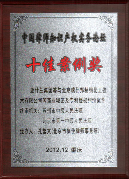 亚什兰商业秘密及专利侵权纠纷案获评年度“十佳”案例