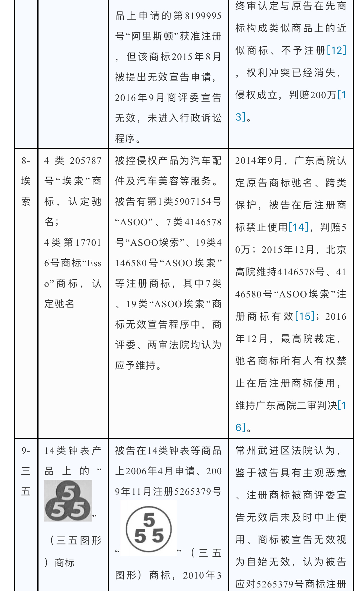 此外,根据笔者的调研,并非所有认定在后注册商标使用构成侵权的民事诉讼,都必然基于驰名商标的特殊保护条款。如果在民事侵权案件审理过程中,在后注册商标已经被商评委宣告无效且该裁定已生效,并且两注册商标核定使用的商品或服务能够认定类似,则无需援引驰名商标的特殊保护条款或驰名商标的“跨类保护”条款,法院可以直接根据类似商品上的近似商标认定在后注册商标的使用构成侵权,例如浙江高院“老板”案、山东高院“妙妙”案、最高院“汇源”案、常州中院“三五”案、福建高院“闽禾”案五个经典判例。