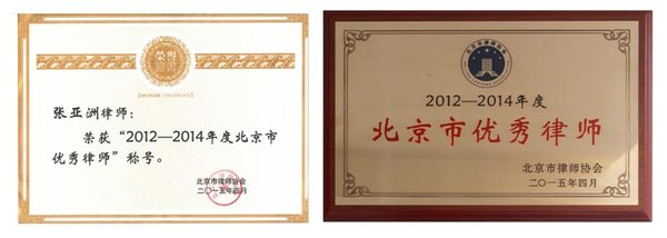 近日,北京市律师协会公布了北京市优秀律师评选活动获奖名单,集佳律师事务所张亚洲律师荣获“2012-2014年度北京市优秀律师”荣誉称号。