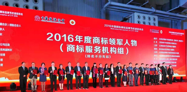 为服务新时期知识产权强国战略,积极推动中国产品向中国品牌转变,发挥品牌引领作用,表彰为商标品牌战略实施做出突出贡献的先进人物,中华商标协会举办了“商标领军人物评选活动”,并在本届商标节欢迎招待会上举行了隆重的颁奖仪式,集佳于泽辉所长当选首届“商标领军人物”,中华商标协会秘书长王培章为获奖人员颁奖。