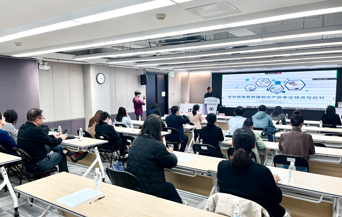 为加快推进中关村国家知识产权服务业高质量集聚发展示范区建设,推动知识产权优质服务资源助力创新主体提升知识产权创造、运用、保护和管理能力,2024年10月17日,中关村知识产权促进中心组织开展第三期中关村示范区知识产权高端培训活动,集佳合伙人武树辰律师应邀出席活动,并发表了“从案例视角看跨国知识产权争议特点与应对”主题演讲。