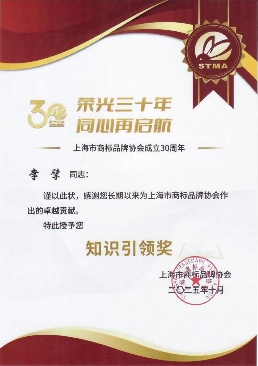 集佳上海分所合伙人李擘律师荣获“知识引领奖”