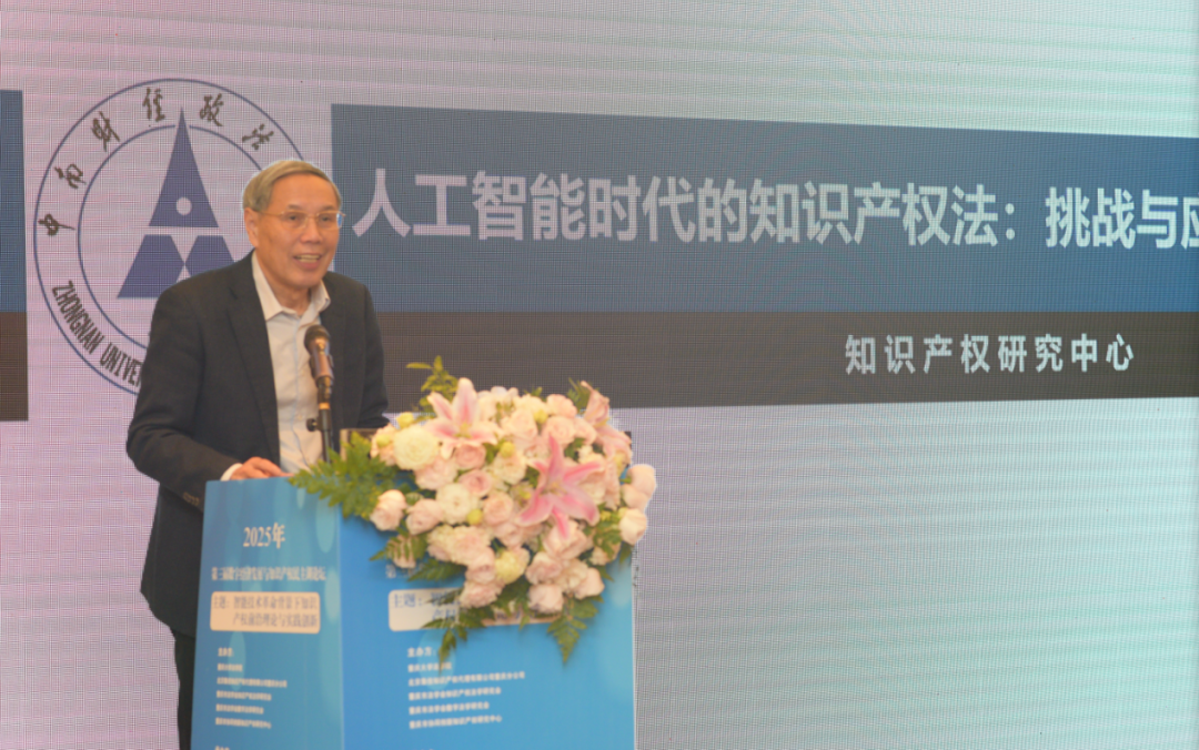 在主旨发言环节,三位专家的发言构成了理论与实务交织的核心对话。中南财经政法大学文澜资深教授、中国法学会知识产权研究会名誉会长吴汉东以“生成式人工智能时代的知识产权:挑战与机遇”为题,从制度层面提出知识产权治理的创新思路。他提出,法律人应以“开放的保守主义”或“谨慎的革命主义”回应技术变革,既要认知其创造力与社会影响力,也要坚守制度理性,平衡创新空间与规制价值。