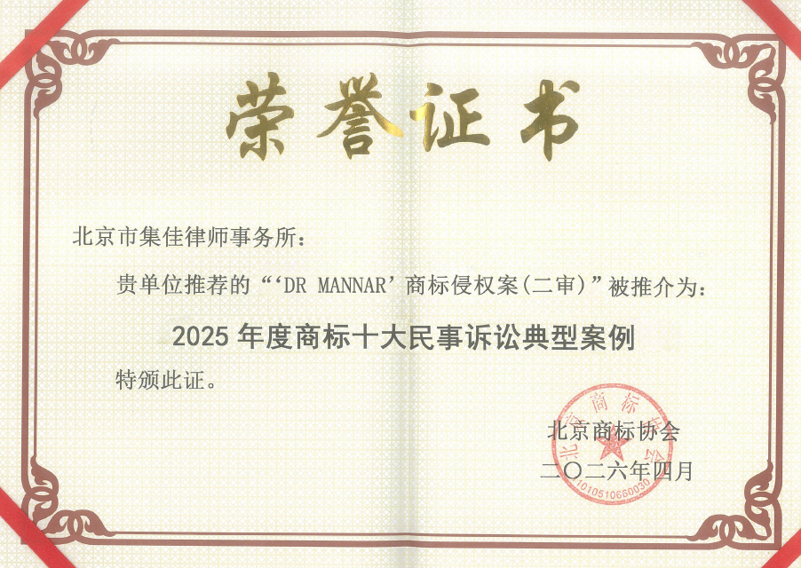 集佳代理案件入选北京商标协会2025年度北京商标典型案例