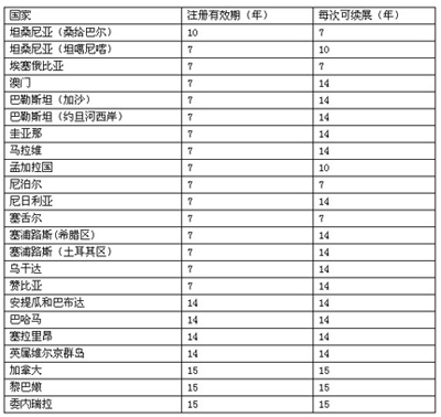 各国商标法对注册商标的有效期都作了明确的规定,目前大多数国家对于商标有效期的规定为自注册之日(或申请之日)起的10年,以下是表格就比较特殊的国家进行简要的总结:
