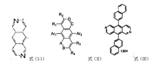 首先,确定审查意见所指出的共同结构是否正确,根据上面所说的第一种观点,该申请的共同结构即为审查意见中所指出的结构;根据第二种与第三种观点,将与母核吡啶并[3,4-g]异喹啉直接连接的变量R1、Q1与Q2引入共同结构的确定,但R1可为氢原子、氰基、碳原子数是1~30的烷基、取代或未取代的碳原子数6~50的芳基、取代或未取代的碳原子数5~50的杂环基、取代或未取代的碳原子数7~30的芳香族胺基、取代或未取代的碳原子数7~30的芳烷氧基或取代或未取代的碳原子数7~30的芳烷巯基;这几者对母核所产生的电子效应、位阻效应等影响各异,也不是本领域公知的同一化合物类别;L1与L2可以为0或1,Q1和Q2独立的选自氮、氧、硫、碳原子数6~30的芳基或碳原子数1~30的杂环基,其中,氮、氧与硫原子,其为化学领域常指的杂原子,三者对母核的影响类似,可视为本领域中公认的同一化合物类别,但其与芳基、杂环基差异较大,相互取代后,本领域技术人员并不能确定其能产生同样的效果,因此不能视为同一化合物类别。由此可见,三种变量中各自所定义的可选择的元素均不是本领域中公认的同一化合物类别,将变量引入后的结构也不是清楚和明确的,该申请的共同结构只能是审查员所指出的吡啶并[3,4-g]异喹啉(式(I-1))。